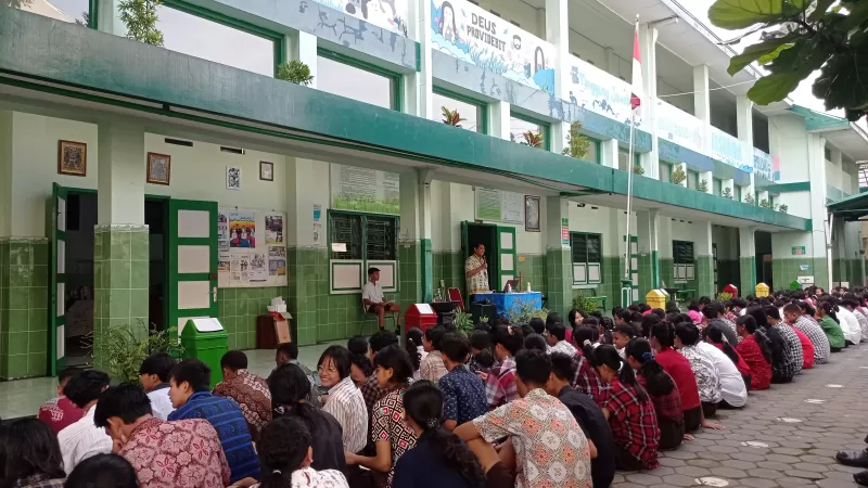 Surakarta, 15 Februari 2025 – SMP Marsudirini St. Theresia Surakarta memaknai Hari Valentine sebagai hari yang penuh cinta dan kasih kepada sesama. Perayaan diawali dengan ibadah di halaman sekolah dengan harapan agar perayaan ini menjadi sarana bagi seluruh warga sekolah untuk menjadi pribadi yang lebih baik, yang senantiasa dipenuhi cinta dan kasih.