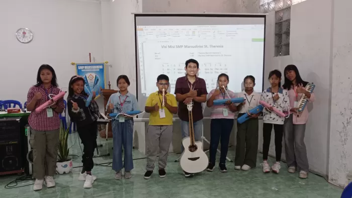 Surakarta, 19 Oktober 2025 — SMP Marsudirini St. Theresia Surakarta menghadirkan kegiatan Benefit Class yang menjadi wadah pengembangan minat dan bakat siswa. Kegiatan dibagi menjadi dua kelas, yaitu Music Class bersama Thomas Becket Gamma C. yang berlangsung di Ruang Kesenian dan Art Class bersama Bagas Subrata di Ruang Kelas 7A. Kegiatan Benefit Class ini diperuntukkan bagi calon murid yang mendaftar pada gelombang early bird periode pendaftaran 1 Agustus - 30 September 2025 yang digelar pada Sabtu (18/10/20205) sebagai pertemuan perdana.